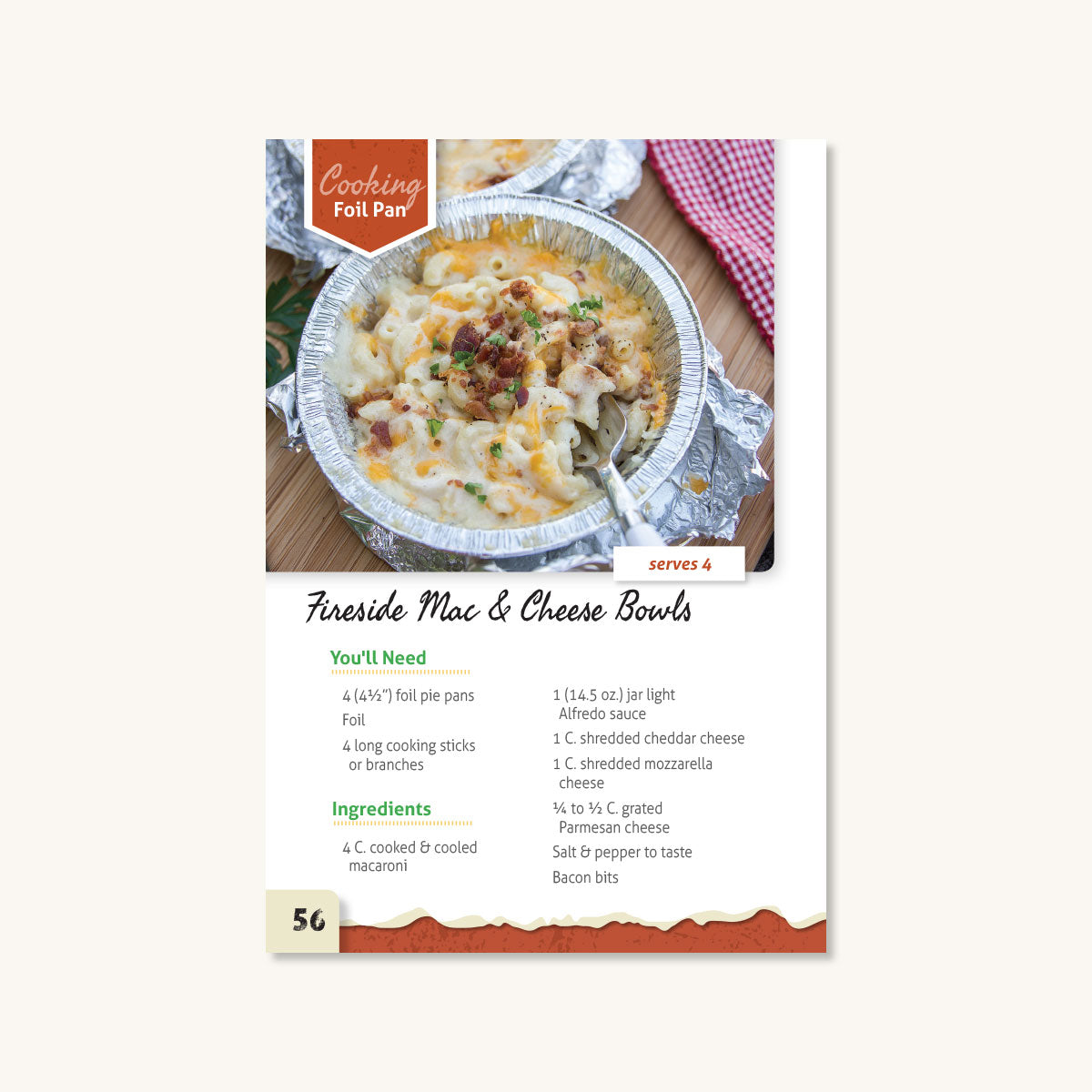 After the fresh air fuels your appetite, feast on simple-to-make recipes sure to please all ages, like Tex-Mex-Foilers, Bacon Pancake Dippers, and Super Tot Skewers. Satisfy your sweet tooth with campfire desserts like S’macos, Monkey Pies, and Campfire Shortcake.